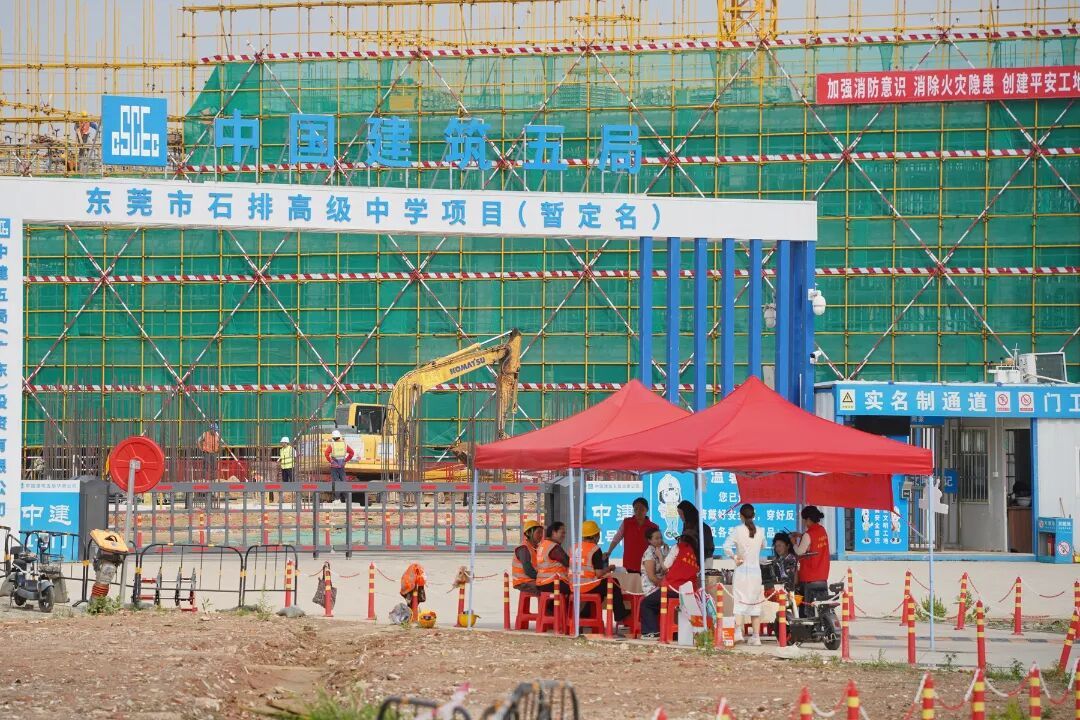 3月7日下午,在东莞石排高级中学项目部工地前,临时搭建的“化妆间”和“摄影棚”热闹起来。